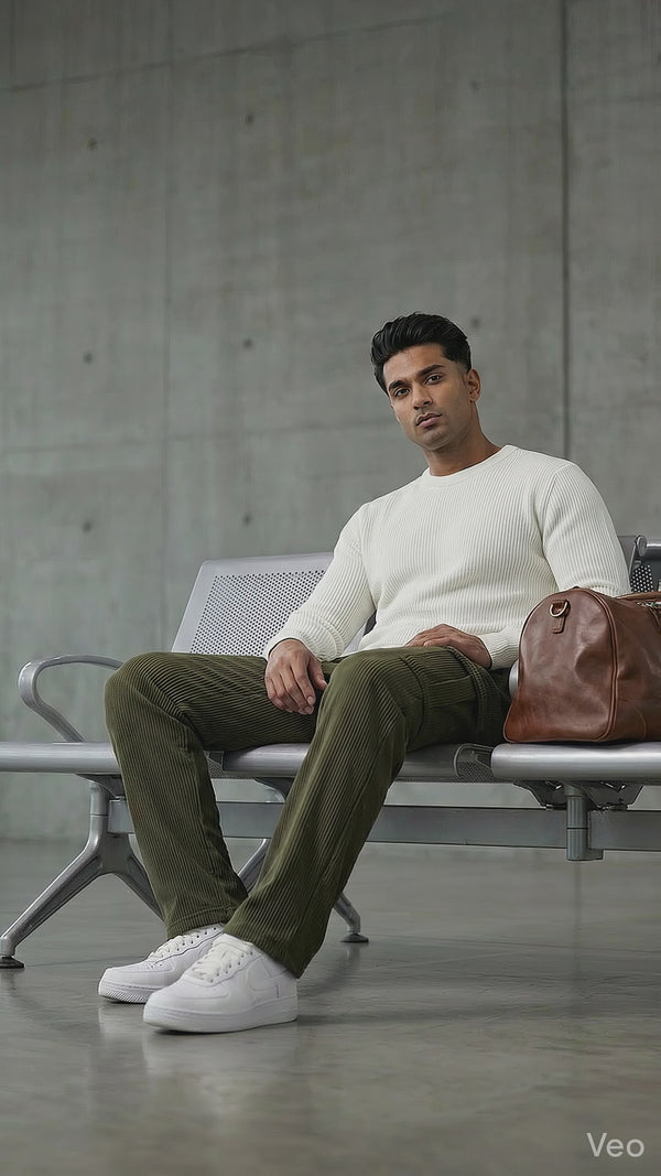 Urban Soft Ribbed Trousers | Baggy Fit Wide Leg - Olive Green