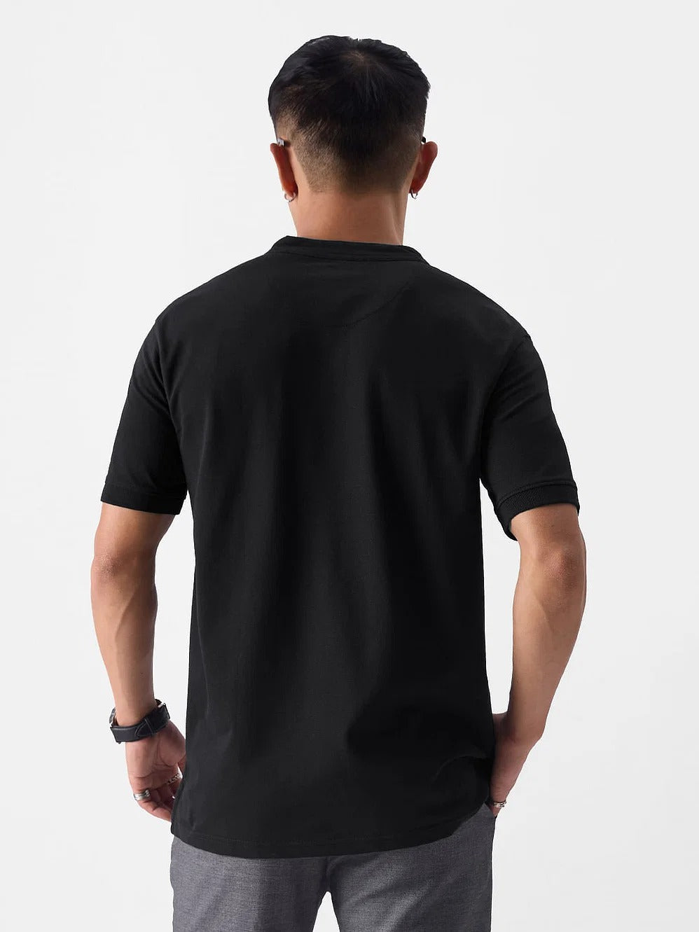 LooFoN Slim Fit Men's Mandarin collar Black T-Shirt