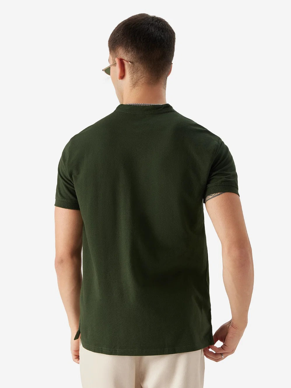 LooFoN Slim Fit Men's Mandarin collar Dark Green T-Shirt