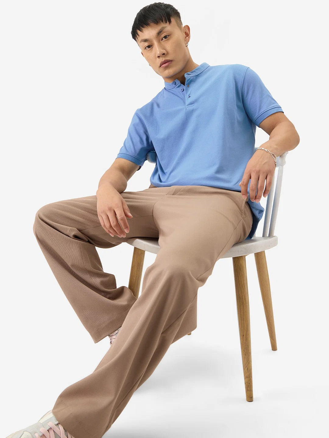 LooFoN Slim Fit Men's Mandarin collar Sky Blue T-Shirt