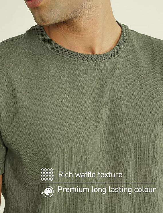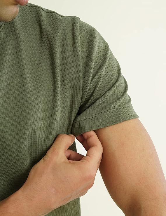 LooFoN Slim Fit Men's Round Nack Green T-Shirt with Ribb Texture Fabric