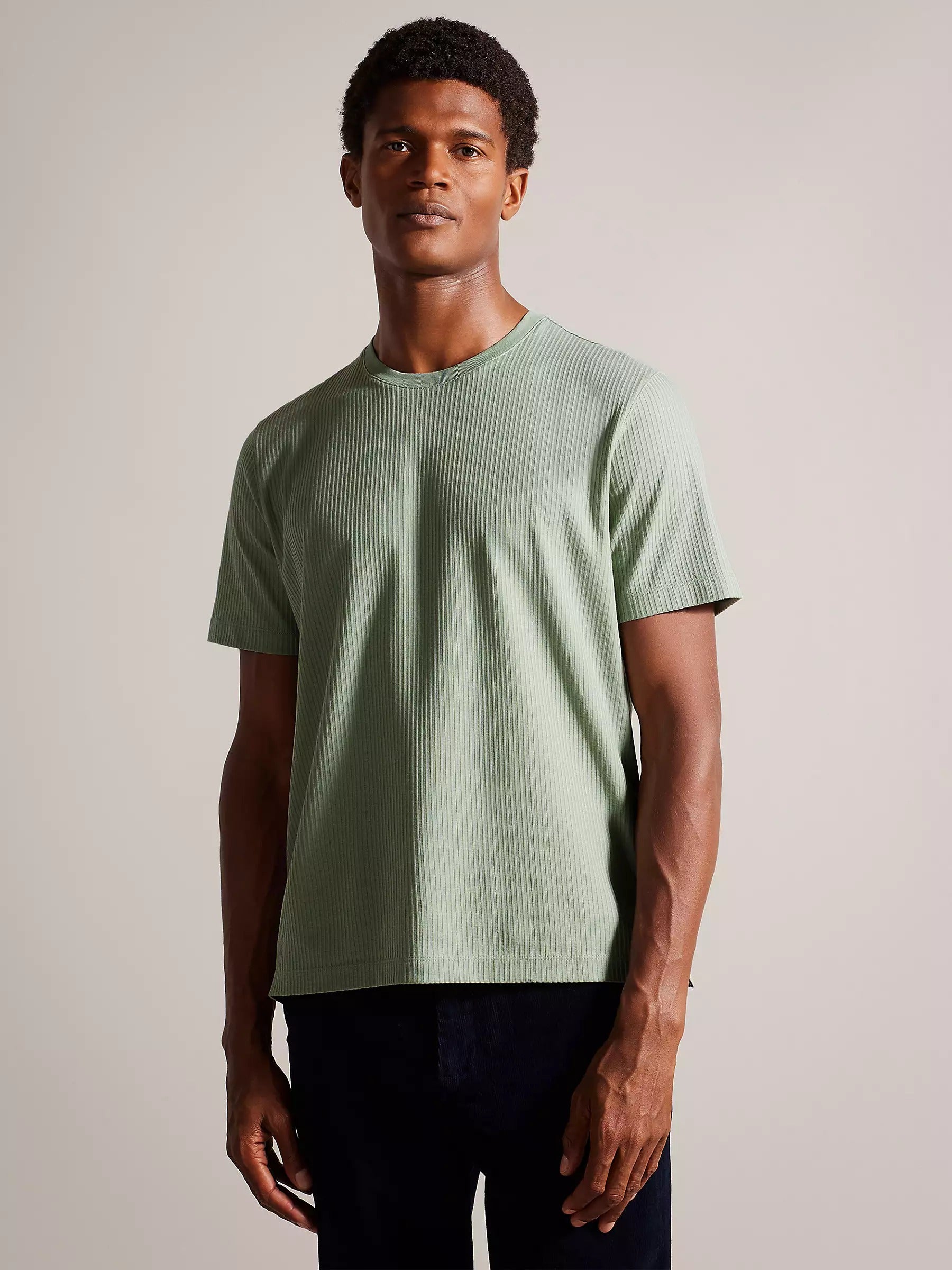LooFoN Slim Fit Men's Round Nack Light Green T-Shirt with Ribb Texture Fabric